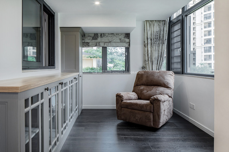 很多人對于家的定義,是都喜歡把家設計成自己喜歡的樣子,大到布局規劃,小到沙發擺飾,事無巨細,一絲不茍;我所接待的這位業主也是如此,很多東西都是根據他所想要的然后慢慢呈現,沙發、櫥柜、衛浴等這些業主都有比較高的要求,也會有自己的堅持,從設計到完工,再最后落地的效果,業主還是非常滿意的。本案并沒有過多的色彩去裝飾,也不拘于尋常電視機的設計,以高級灰白為主,搭配業主精心挑選定制的收納柜、酒紅色沙發、窗簾、木地板以及擺飾等元素糅合起來,設計出自然質樸、內斂時尚的空間氛圍,讓人一如有時光的沉淀痕跡,醇意韻味十足。