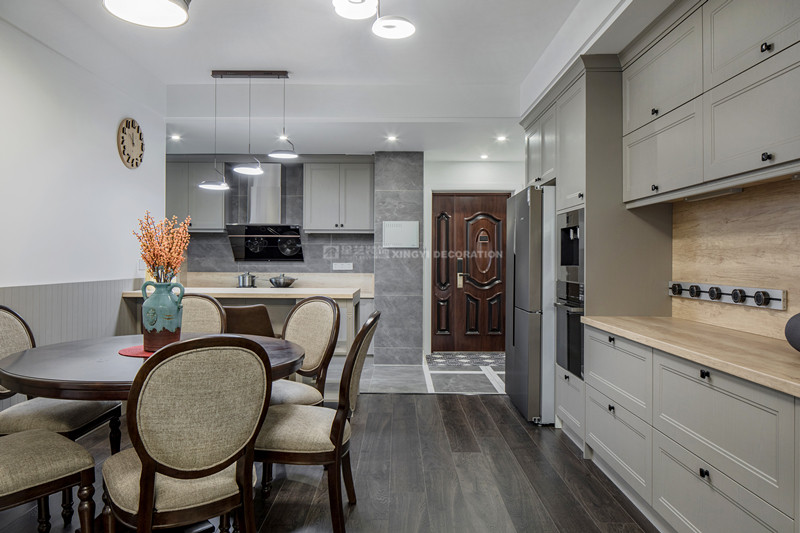 從明亮整潔的廚房擴大,分出中餐和西餐廚吧臺,再到走廊里很有愛的小黑板,以及洗漱區、衣帽間和梳妝臺等小地方的細微處理,都足以看出業主和設計師所付出的心血,幾乎每寸空間都能貼近生活、合理設計,滿足業主每位家庭成員所需的同時,亦表現出了業主生活情趣極高,而星藝設計無疑是錦上添花,讓業主生活品質更上一層樓。