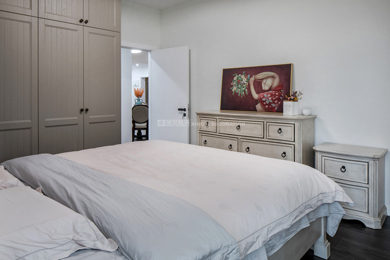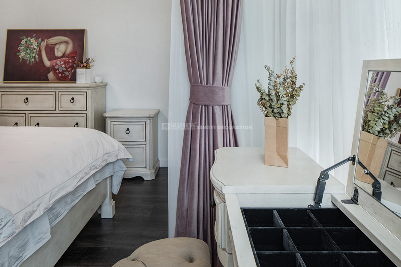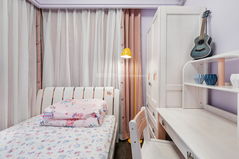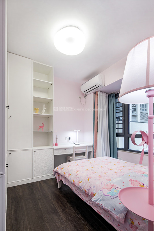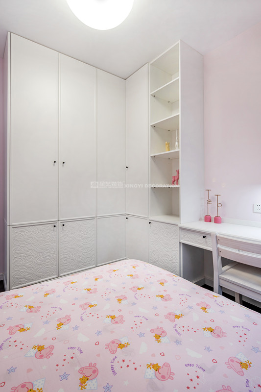 將休閑區打通,使得客廳愈加通透明亮之余,使得休閑區域空間更為寬敞明亮,小孩玩鬧,或大人靜坐思考、辦公,都不顯沉悶,一舉兩得。臥室的設計風格各異,皆是因人制宜,或粉紅精巧、或古香古色;亦或簡潔自然;都足以見得設計師根據業主需求細心而作,美觀靜謐又不失實用,十分得宜。