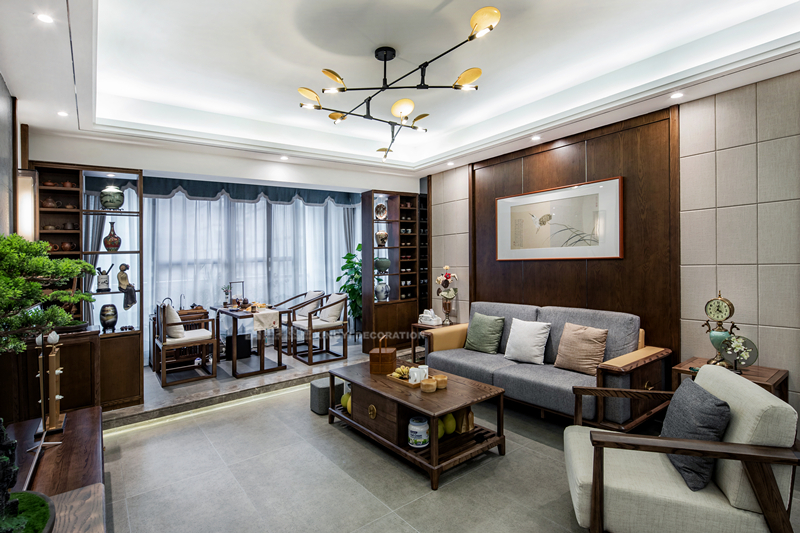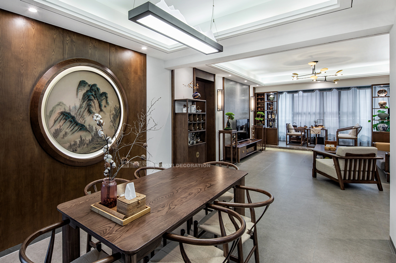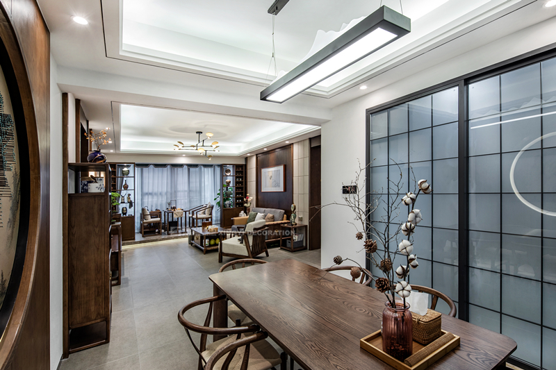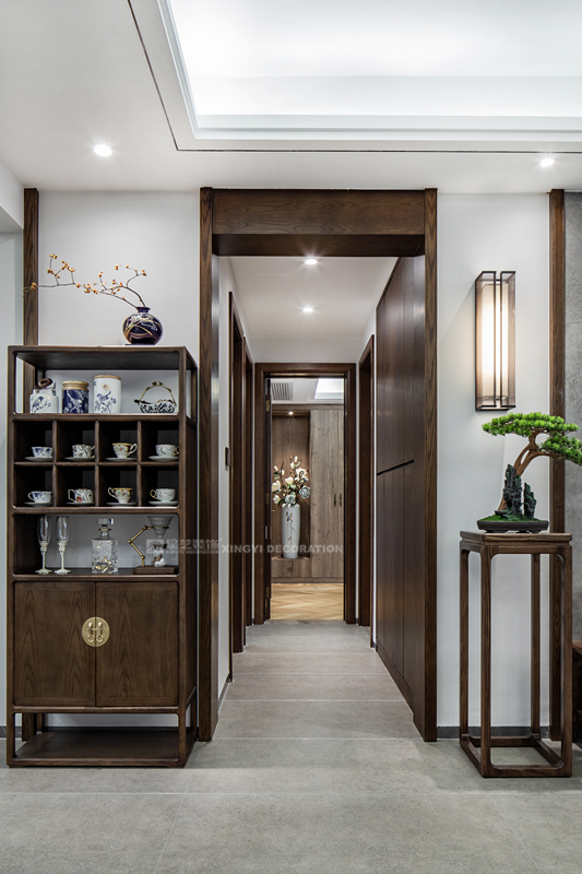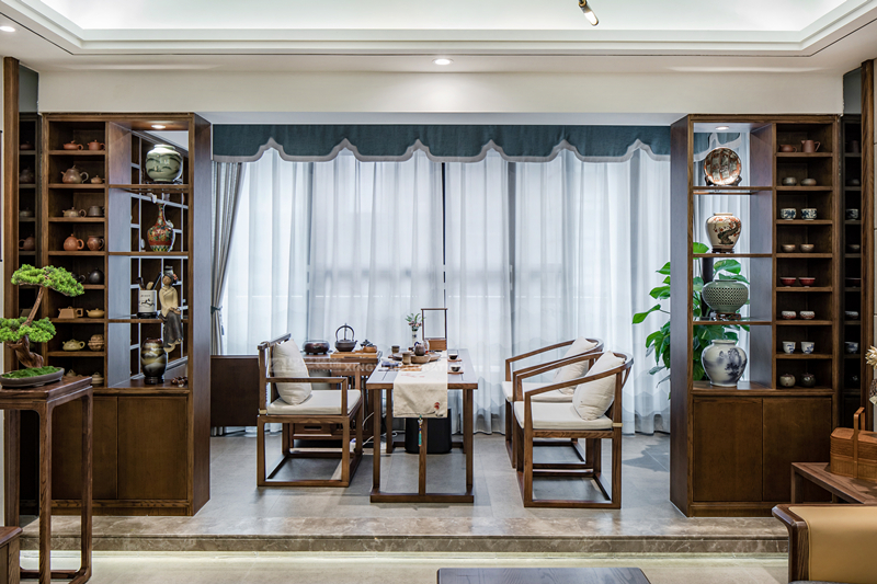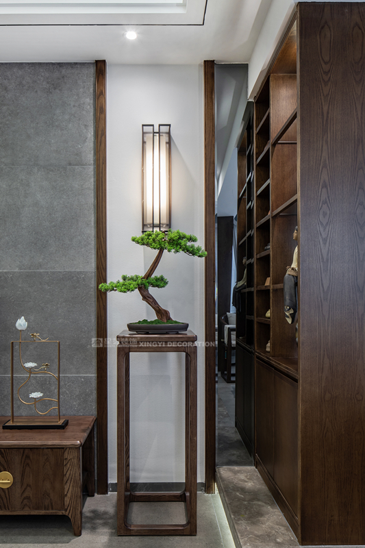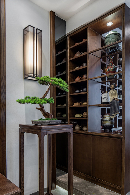 歡迎訪問星藝裝飾南寧公司官網(wǎng)與傳統(tǒng)中式不同,本案作品提煉了傳統(tǒng)中式的元素,用簡約的手法表現(xiàn)出來,去其厚重刻板,取其禪意風(fēng)骨,以方寸山水、咫尺枯榮等元素點(diǎn)綴其中,張弛有道,古樸自然,讓空間極具意境。業(yè)主酷愛品茗,因此在注意精妙美觀的同時(shí),強(qiáng)大的實(shí)用性設(shè)計(jì)也極為重要,設(shè)計(jì)師運(yùn)用了大量的原木柜子將空間分割得極具層次感,在不失通透自然的情況下,合理規(guī)劃出不同的收納空間,每個(gè)小空間正好放置小茶壺,或擺放別致的瓷器,不偏不倚,更添古意。