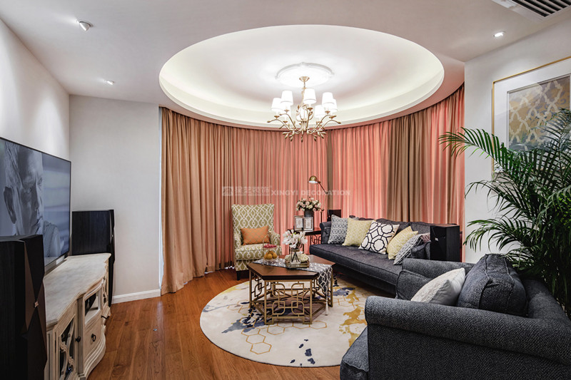本次設計的案例坐落于美麗的青秀山腳下,南面的窗戶把優美的風景凈收眼底,正入冬季,當暖暖的陽光灑下沙發,有種被幸福籠罩的溫暖。通過和業主的溝通分析,戶型的合理與否,并不在于大小,而在于房屋各個部分之間的比例與布局關系。原戶型的布局并不合適他們一家三口的生活習慣及功能需求,所以在本案空間總體設計上進行了解構重組,最終定位為簡美風格。原客廳和主臥做了調換,主臥增加了衣帽間,把最美的落地窗風景和采光留給了客廳,書房和小孩房把原過道外擴空間利用起來,廚房和餐廳打開融合到一起,公共空間動靜分離,洗手間干濕分離,生活陽臺留下了朝南的一面,另一個大陽臺直接納入到主臥作為化妝區使用。整個家居空間公私分區,動區包括客廳、廚房、餐廳等,日常活動接待客人主要在動區;靜區主要用于休息的隱私空間,包括臥室、書房、衛生間、衣帽間等。每個房間的私密性與其功能都應該是相輔相成的,并在總體格局上表現為一種依次遞增的趨勢。墻面硬裝上不加過多修飾與約束的美式風格,淺色系的沙發,木質感的茶幾搭配一株綠色的植物,傳遞著簡潔舒適的氣息。在淡黃色光線的映襯下呈現出雅致浪漫的休閑式浪漫。開放式的廚房,懷舊感的墻磚,凸顯著美式風格的自由,天花假梁的造型處理上別具一格。最終呈現出這樣一個自由隨意、簡潔懷舊、實用舒適的家居空間。