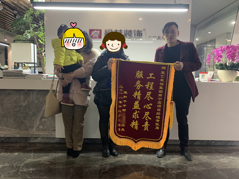 2019年1月22日,星藝裝飾南寧公司項目經(jīng)理黃張勇接受到榮和千千樹業(yè)主業(yè)主的表彰錦旗! 這不是星藝裝飾的第一面錦旗,但也肯定不是最后一面錦旗,紅艷艷的錦旗是星藝裝飾始終堅持顧客至上的服務(wù)理念的最好的回報,也是公司不斷發(fā)展、不斷壯大的強勁動力。我們將繼續(xù)堅持“把裝修交給我們,您放心上班去”的宗旨,全心全意為每一位客戶服務(wù),打造出更多的“放心工程”、“品質(zhì)工程”,來回報我們的客戶。