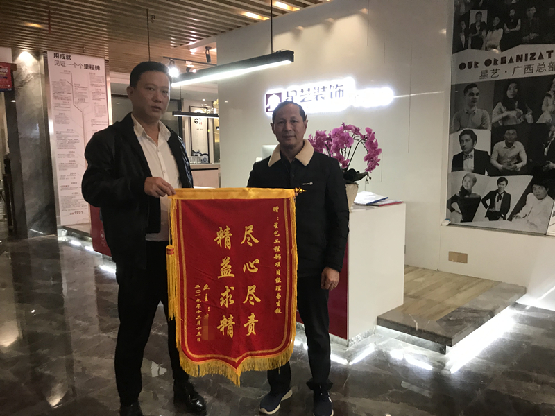 2019年12月24日,昌泰茗城的業主李先生來到星藝裝飾匯東店,親手贈予易生教項目經理錦旗表示感謝