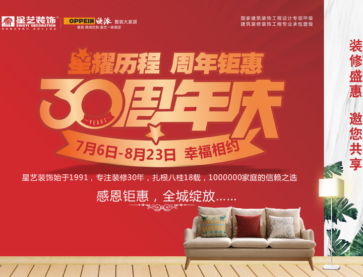 活動(dòng)期間開工工程,竣工后星藝裝飾贈(zèng)送2年家居防四害處理服務(wù)。