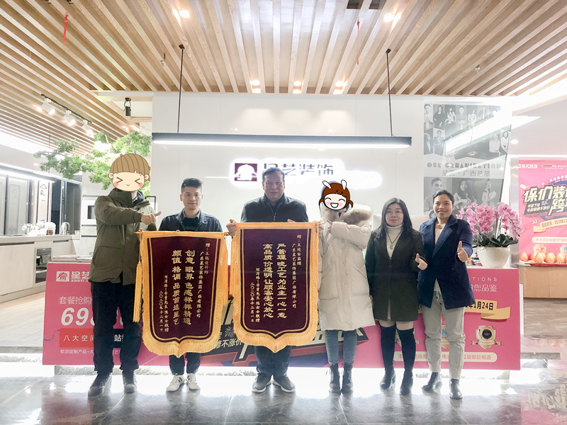 2020年十二月,鯉灣路1號業主將大紅錦旗送到星藝裝飾,以感謝星藝裝飾王延金監理嚴管理、曉工藝、為業主一心一意,高品質、價透明、讓顧客安心放心的裝修質量和服務, 感謝設計師王聰的創意、眼界、色感樣樣精通,顏值、格調、品質首選星藝,這是對我們工作的極大認可和肯定。在今后的工作中,我們將再接再厲,堅持做客戶口碑,打造出更多的“精品工程”、“放心工程”,來回報我們的客戶。