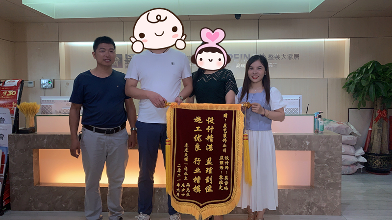 2021年9月1日,龍光天曜業主來到南寧星藝裝飾集成整裝館,贈送錦旗給與項目經理黎維定,設計師莫雪梅,高度贊揚項目經理設計師,施工優良 行業楷模 設計精湛 監理到位
