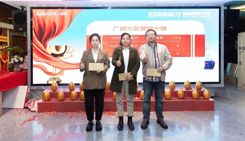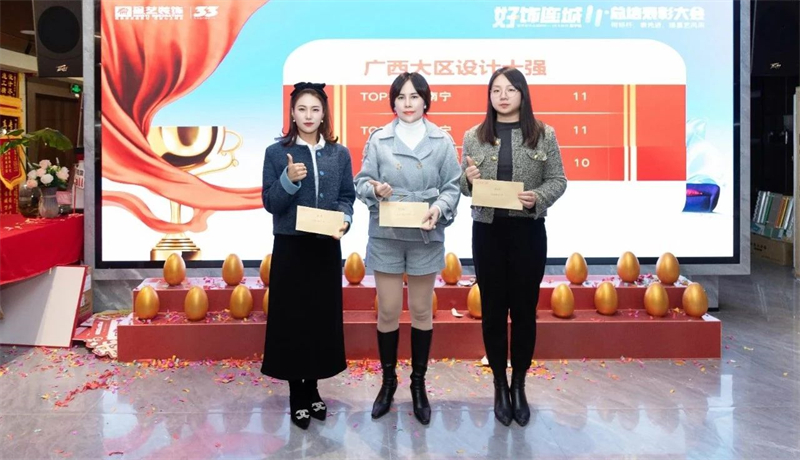 緊接著,大會進入“好飾連城11(南寧站)”總結表彰環節,在此次活動中,經過星藝家人們的共同努力,創下獲508戶業主選擇的歷史佳績新高,再度彰顯星藝裝飾創立33年的品牌魅力;其中涌現出了許多優秀的團隊及個人,他們齊心奮進,勇創佳績,為其他星藝家人樹立標桿,樹立“星”榜樣;會議現場,周總、李工、胡總也分別為其頒發活動獎勵及證書。