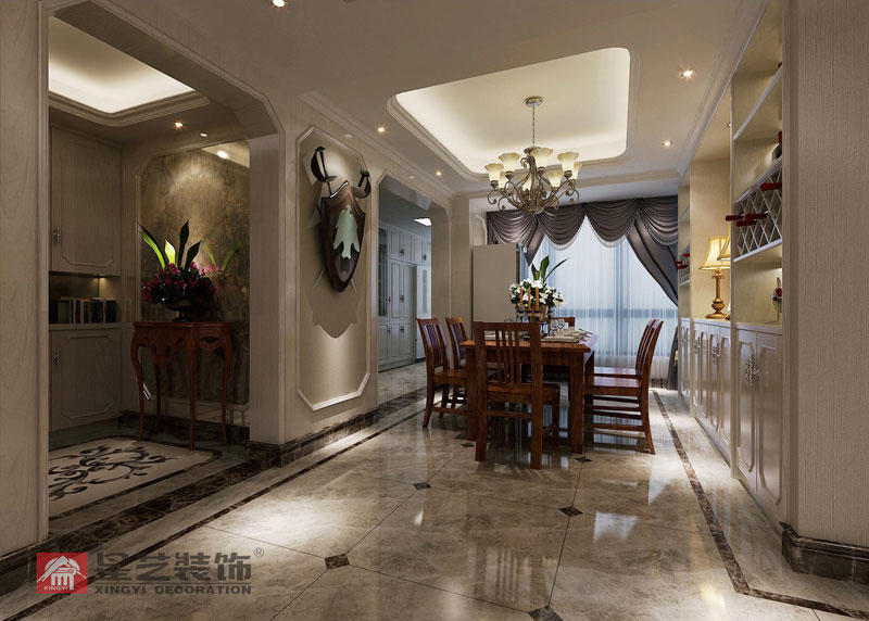 客廳餐廳用線條出來,把繁瑣的中式和棱角都去除,整體以米黃色調(diào)為主,營造一個(gè)溫馨浪漫的空間。熱愛國學(xué)就必有中式書房,書房是一個(gè)單獨(dú)的空間,中式書房不會(huì)影響整體風(fēng)格。和中國文化能很好的融合。