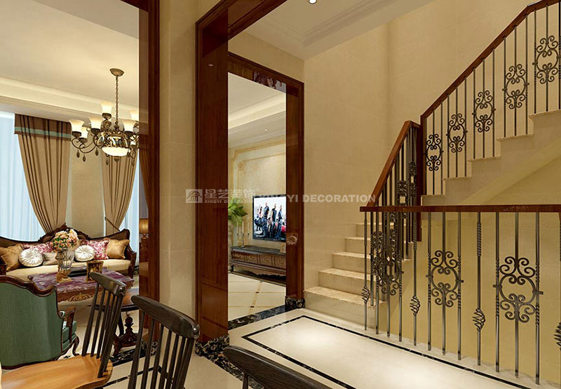 本案為一個(gè)聯(lián)排別墅的戶型,業(yè)主追求美式風(fēng)格的設(shè)計(jì)。在設(shè)計(jì)過程中設(shè)計(jì)師并不過分強(qiáng)調(diào)繁復(fù)的雕刻,以舒適和多功能為主,但同時(shí)也不失懷舊、浪漫的感覺。沒有太多造作的修飾與約束,不經(jīng)意中也成就了另外一種休閑式的浪漫,但又能找尋文化根基的新的懷舊、貴氣加大氣而又不失自在與隨意的風(fēng)格。美式家居風(fēng)格的這些元素也正好迎合了時(shí)下的文化資產(chǎn)者對(duì)生活方式的需求,即:有文化感、有貴氣感,還不能缺乏自在感與情調(diào)感。