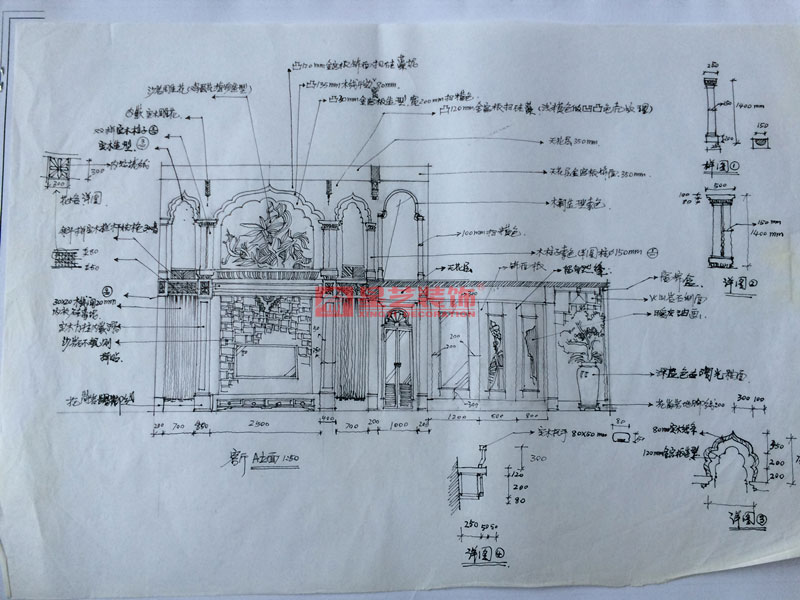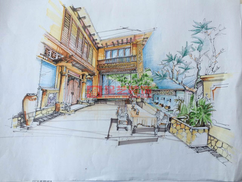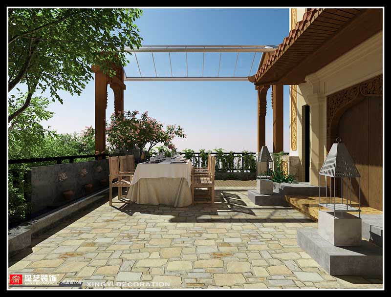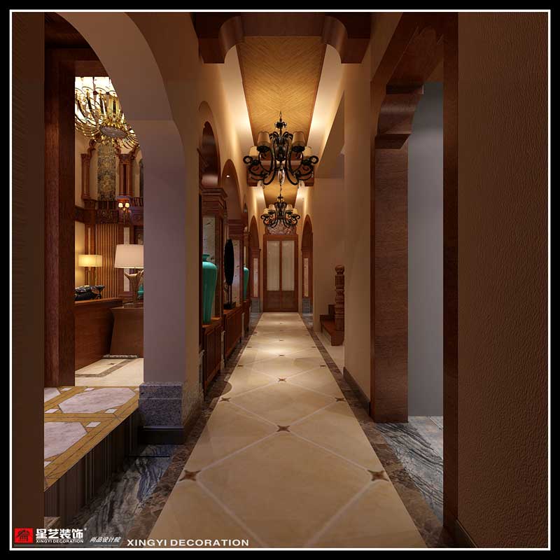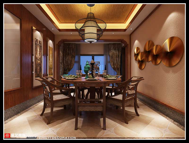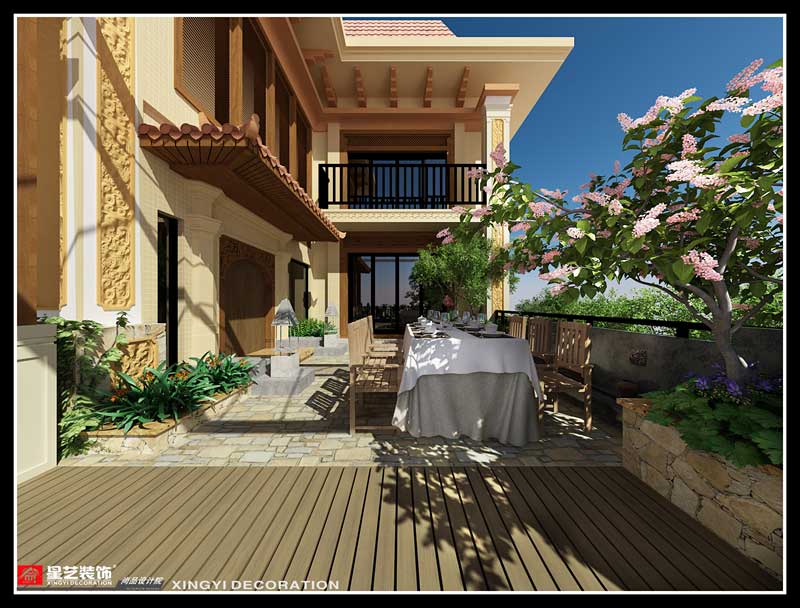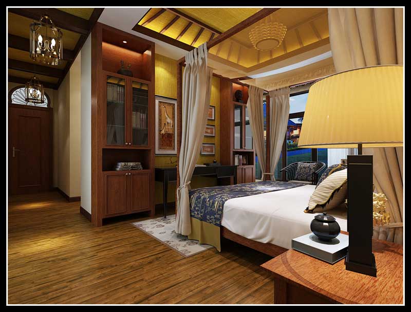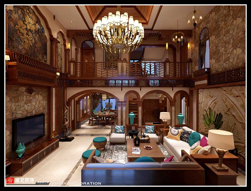 本案在東南亞風格中更偏向于家居生活化,東南亞風格講究布局上的軸線對稱、細節上多運用原木廊柱、雕花線條、金色米黃、草編等,在整個建筑空間上喜歡氣勢恢宏、豪華舒適的居住空間,給人以一種高貴典雅的感覺。