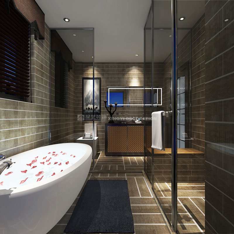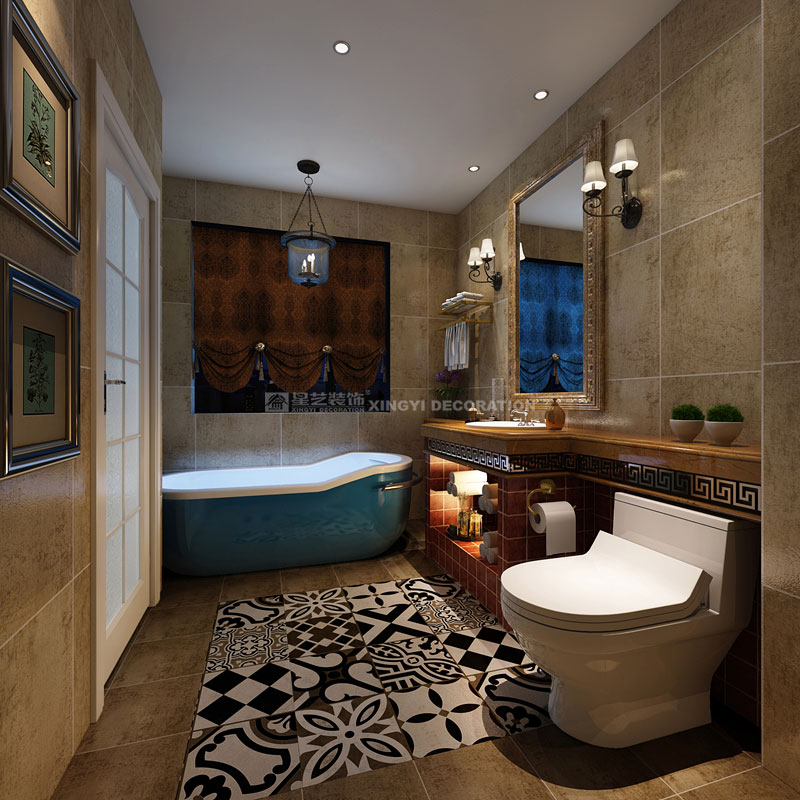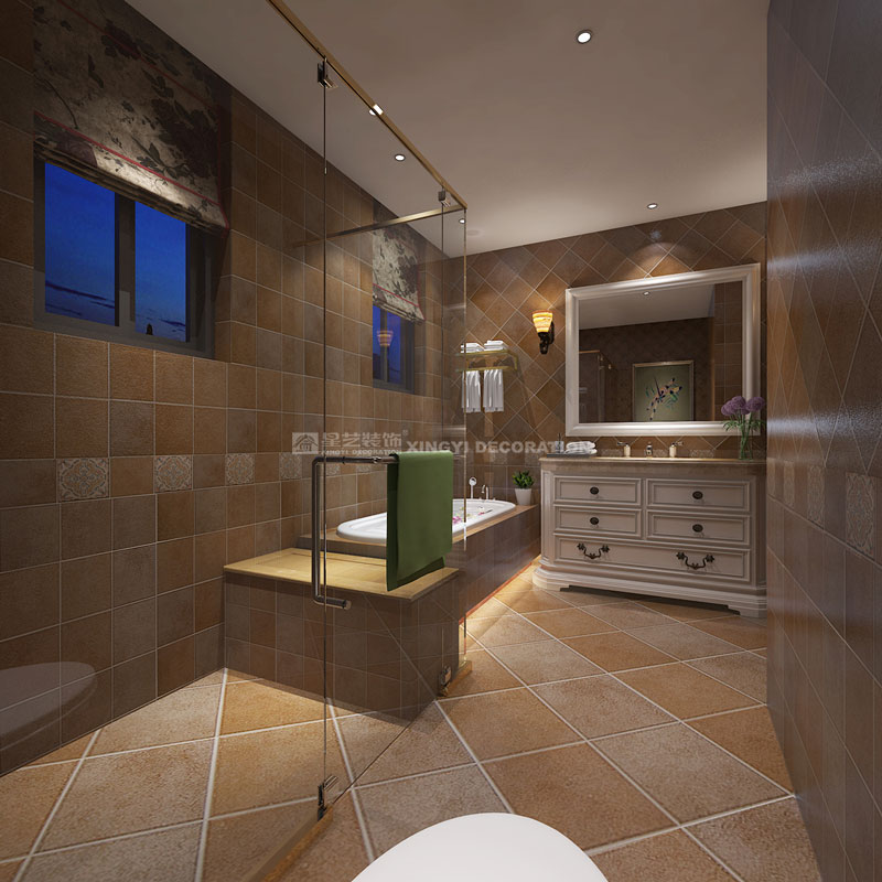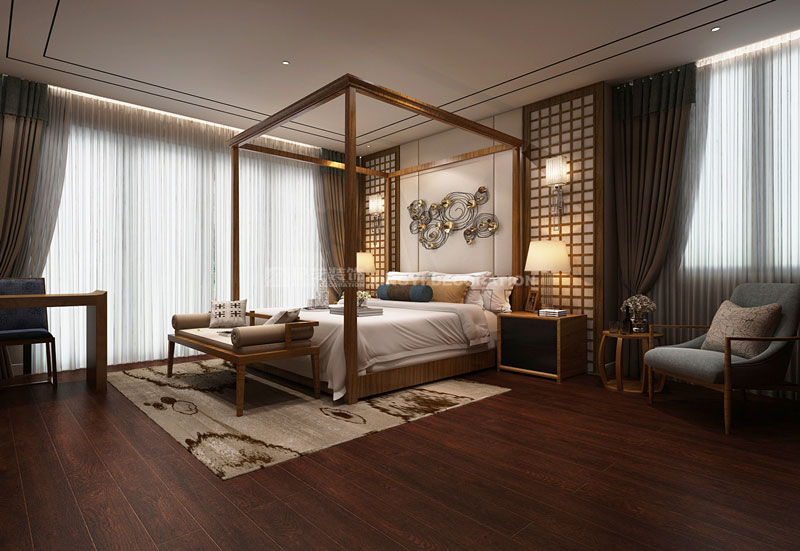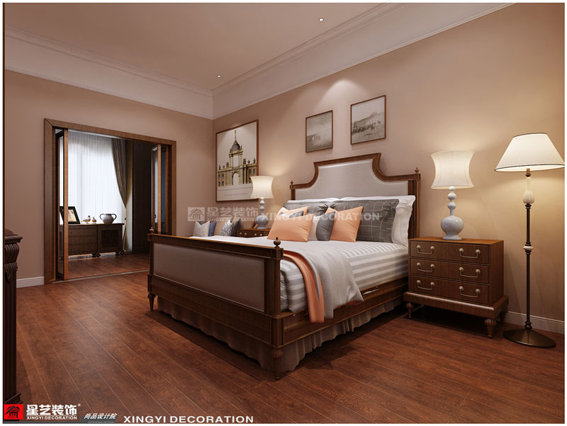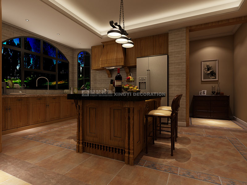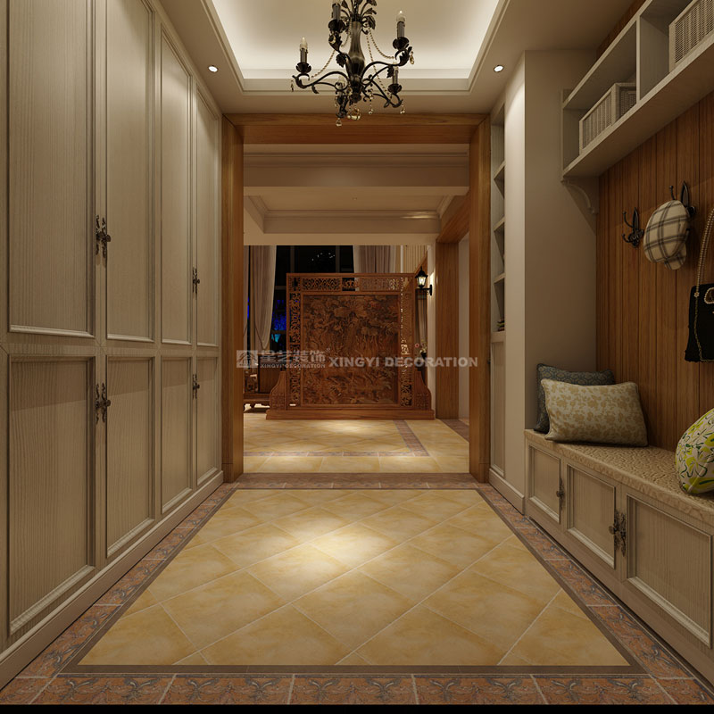 業主經常出國,愛人小孩都在國外,并且喜歡打高爾夫球。在整體設計上,給定位了自由休閑的美式風格,在客廳的設計上結合了中式的韻味,舒適大方。