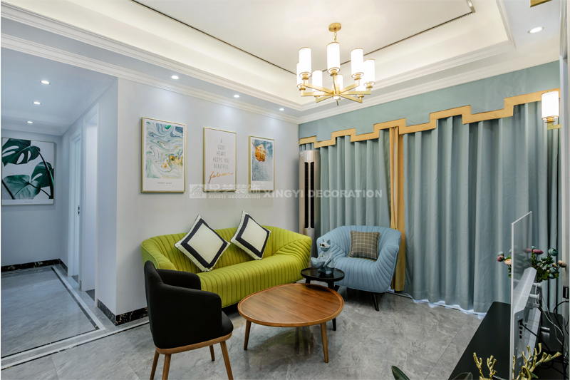 南寧星藝裝飾程文芳、曾相山設計師專業設計的嘉和城白鷺中州98平現代美式完工實景作品,現代美式風格是時代發展趨勢的產物,指的是色彩相對傳統美式更加豐富多彩,空間風格更顯年輕化和多元化,家具選擇更有包容性和鮮明性。所以設計師在聽完業主的需求后,便提議出將她房子設計成現代美式,既符合她年輕時尚的個性,又能滿足業主接待朋友時,所需要的高品質情調,實用美觀,十分得宜。是以兩人一拍即合,從設計到落地實景,都花費了許多精力和時間;正因為如此,才有后期近乎完美的空間實景。客廳的主色調以純白色為主,用大塊藍色的電視背景墻和窗簾將空間勾勒出不一樣的層次感,搭配設計感十足的燈具、精心淘來的擺飾和綠色的布藝沙發、淺色抱枕等,都為房間增添幾份靈動的氣息。在餐廳和廚房的設計上,設計師為了讓空間看上去更寬敞明亮,將兩者間的空間色彩轉接極為自然,無論是細心裝飾的冰箱還是簡約的桌椅,都足以讓人感受到不一樣的品質,十分難得。臥室因人制宜,大人房色彩搭配簡約明快,小孩房精致有趣,摻入許多可愛擺飾的元素點綴,小清新中亦不失童真,猶如讓人入眠時置身童話世界一般。