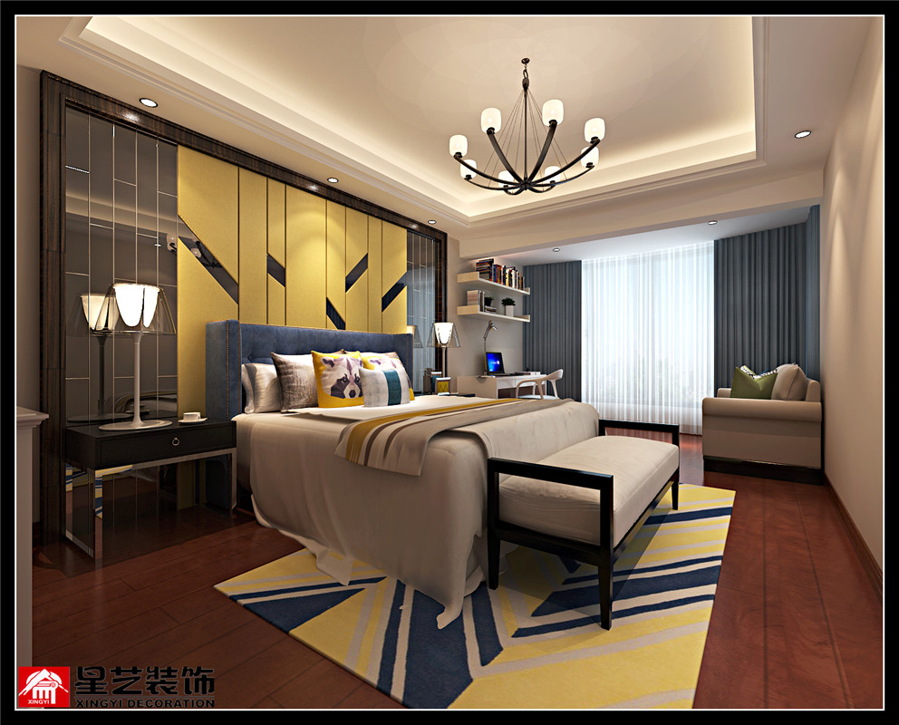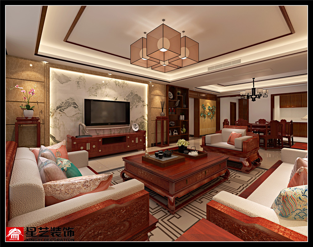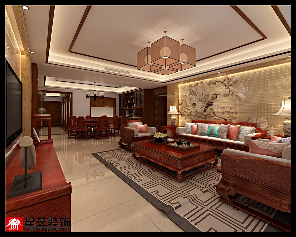 南寧星藝裝飾馬瓏萍設計師專業設計的保利大江郡180平中式風格裝修案例,這位業主非常有意思,是名四川人在廣西定居,有一對非常靈氣的龍鳳胎,她把兩個大套間讓出來給兒女住,自己住稍微小一點的房間,面朝陽臺,偶爾早晨可以朝江做做瑜伽,十分愜意。由于是精裝房,因此原結構沒有調動,客戶喜歡傳統中式的味道,定位為中式風格,全房裝飾主題圍繞著山水、花卉、喜鳥、營造一種詩情畫意的意境,小孩房則依據年輕兒女喜好做了偏為時尚的設計。在入戶長過道的設計上,我花了個小心思,將業主名字中帶的菊字容入設計中,把入戶長過道打造成了畫廊,以木飾雕花作畫框,加入黑鏡,帶些靈動,畫框內裱上梅蘭竹菊的中式水墨畫,悠然雅致。