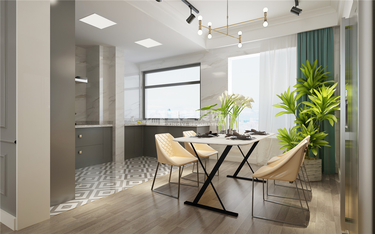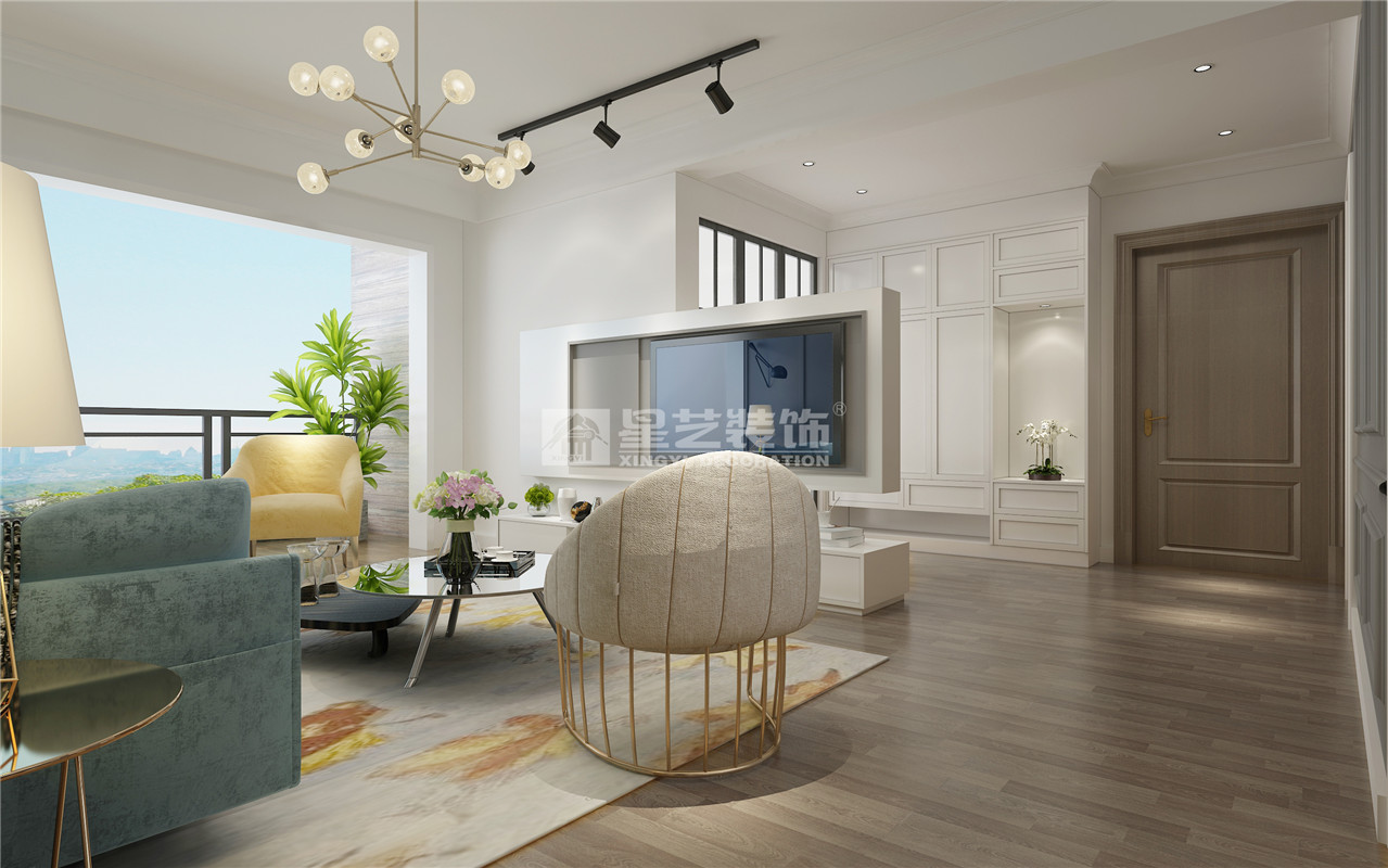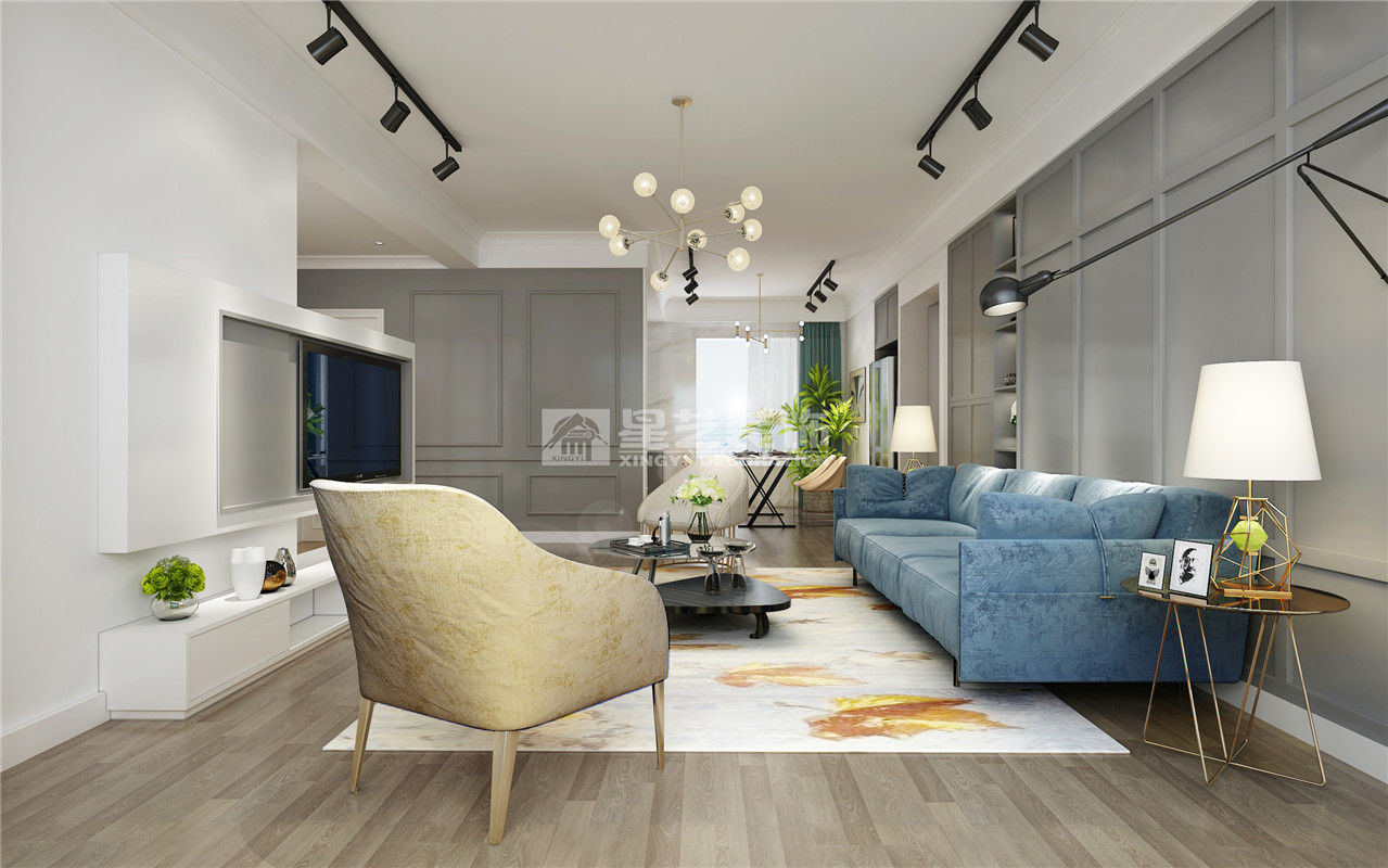 美式風格設計理念表現為追求華麗,高雅的古典風格。居室色彩主調為白色,擅用各種花飾、豐富的木線變化、空間環境多表現出華美、富麗、浪漫的氣氛。美式客廳風格采用石膏線吊頂,搭配精致的美式吊頂,營造出一種懷舊、浪漫的感覺。以木地板作為地面裝飾材料,光澤感極佳,盡顯溫馨淡雅。