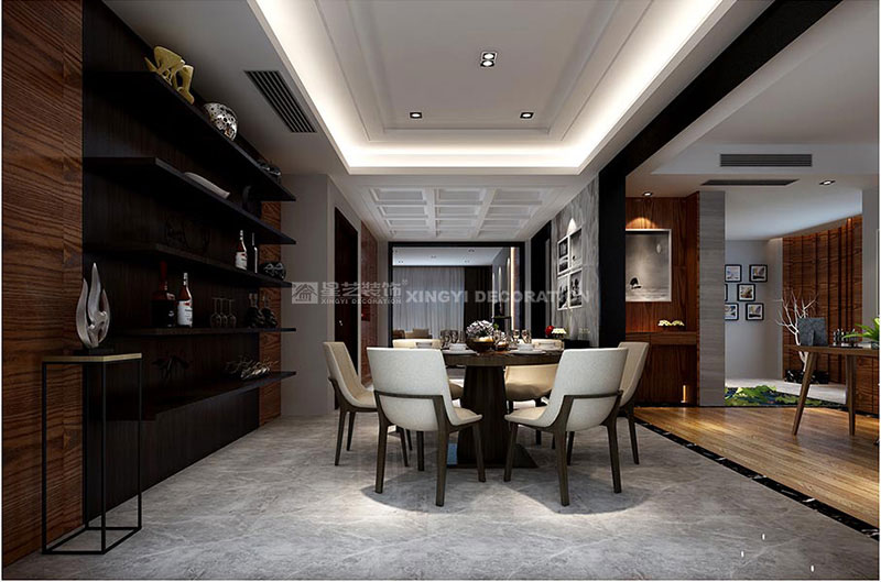 本案200平米,對于空間的規劃在經過與業主溝通之后確認整個空間以大部分通透的方式表現,整個空間的線條比較硬朗,門套以黑色不銹鋼為主,簡約而不失時尚,整個空間用的大紋理木紋,大氣,以色彩和單純的造型滿足使用功能,燈光以筒燈為主,整個空間沒有使用大燈,收納空間沒有過多的造型,整個空間簡約整齊。