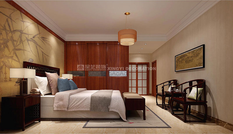 維也納森林170平裝修案例設(shè)計(jì)說明:本案例--摒棄古典中式復(fù)雜的工藝和深沉的色調(diào)。保留中式的韻味,創(chuàng)造溫馨的空間。在色彩上,運(yùn)用深色木等古典常用色來渲染空間氛圍,營造出富麗堂皇的效果。氣質(zhì)沉穩(wěn)高貴,細(xì)節(jié)雕刻精美,洋溢著古典的穩(wěn)重華麗。在配飾上,以華麗、明亮的色彩,配以精美的造型達(dá)到雍容華貴的裝飾效果。